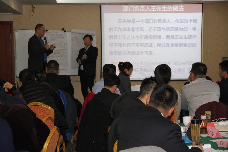集团的72名管理者被分成了9个小组,每个小组选出一名小组长,每个小组都在培训伊始提出3个有待解决的管理问题。张老师重点给大家介绍了教练型领导的内涵、角色定位、应具备的能力和使用技巧,并通过案例分享、情景模拟、小组讨论等方式积极与学员交流。培训的最后,张老师带领大家回顾培训开始时提出的问题,给大家提了一些建议和方法。最后让大家利用两天培训学到的方法和工具,制定行为改善计划和措施。