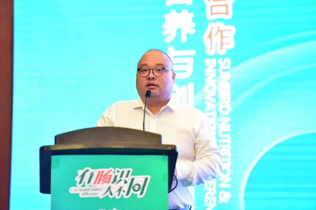 报告环节的最后,根源集团张大伟博士带来以《新常态下微生态产品的研发与应用方案》为主题的报告分享。大伟博士首先借助《“菌酶联合全肠分布”理念解读》短片开场,并从新常态对肠道健康维护的挑战、微生态区系对脂类代谢的影响、抑菌型益生菌及相关抑菌助剂的筛选及作用机理、动物肠道健康与生产性能的平衡、微生态制剂应用方案的选择等五个维度对报告进行解读。张大伟博士在报告中指出,根源集团多年来一直潜心于微生态产品在肠道健康中的应用,坚信只有将技术转化为对用户、对社会有益的产品才能够产生价值。