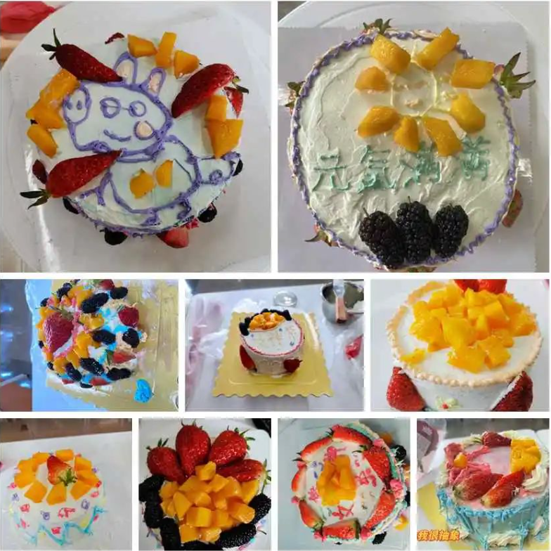 一番忙碌后,香甜可口、花样各异、诱人美味的蛋糕作品纷纷亮相。